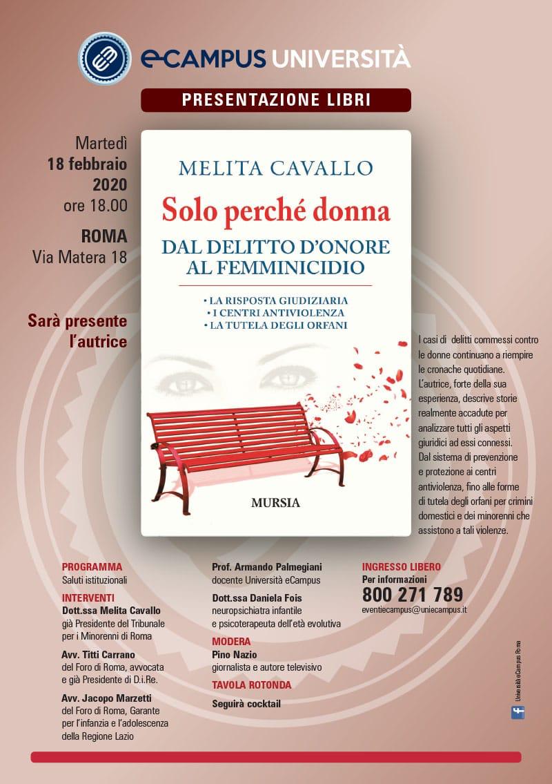 28/01/2020 Dove: Roma Presentazione del libro di Melita Cavallo Solo perché donna. Dal delitto d'onore al femminicidio. AllegatoDimensione Locandina106.33 KB FacebookTwitterLinkedIn