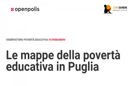 Le mappe della povertà educativa in Puglia è il nuovo report realizzato dalla Fondazione Openpolis e dall’impresa sociale Con i Bambini nell’ambito del Fondo nazionale per il contrasto della povertà educativa minorile.